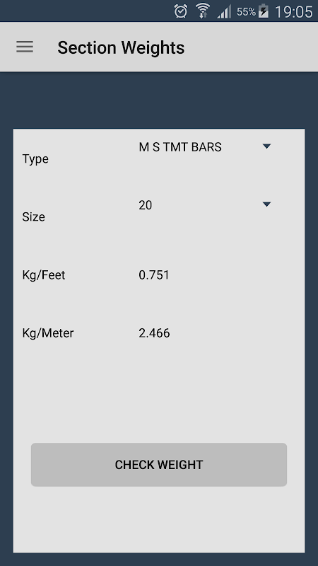 This application makes various structural steel weights on your finger tips.