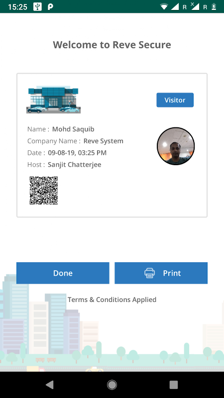 Print & Digital Visitor Badges: Instantly generates visitor registration badges with QR code which can be printed or sent to the visitor through SMS.