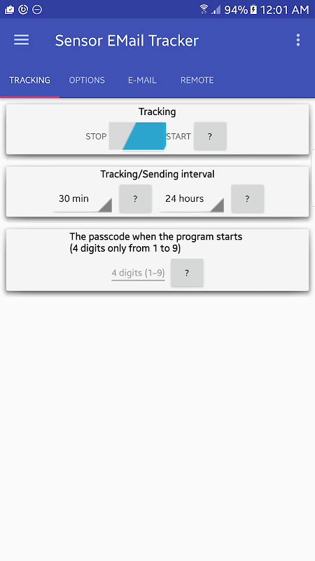 Sensor EMail Tracker is the App that allows you to determine and track the sensor information of your Android devices, it quietly records periodically. The recorded sensor data stores in the device memory and then transmits to your e-mail address as a database table. To monitor sensors of your tracked devices, you just open your e-mail account on any computer, tablet or smartphone and see the list of sensor data.