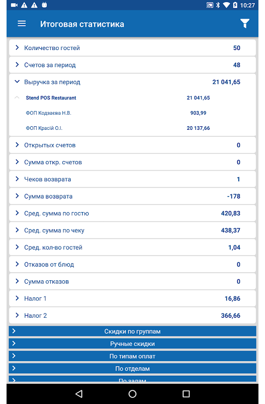 Gelir raporları, hizmet yerlerinin ve salonların yüklenmesi, mal satışına ilişkin ayrıntılı analizler, mal ve hizmet satışlarından elde edilen gelir miktarı;