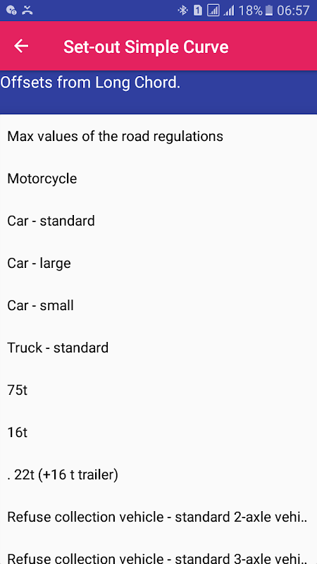 Setoutline Basit Eğrisi uygulama kullanıcısı (Raymond ve Banister'la, sayfa 355-356) adlı Neufert'te (1980, sayfa 436) ve basit dairesel eğri formüller elde edilmiştir çeşitli araç dönüş yarıçapı, seçim yapmanızı sağlar. Bu kullanıcı sahada kasetleriyle Kavisleri kurulurken kullanışlı olmasını bulacaksınız kullanıcı dostu bir uygulama.