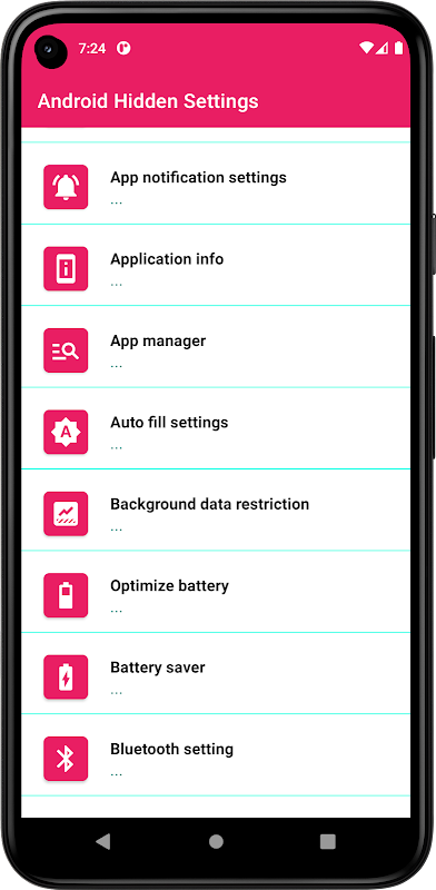 Bu ayar uygulamasının görünümü çok basittir ve tek bir sayfa erişimine sahiptir. Bu ücretsiz bir ayarlar uygulamasıdır, bu nedenle belirli telefon ayarları için herhangi bir erişim sorunu yoktur, cep telefonunuzun yazılım ve donanım yapılandırmasına bağlı olarak bazı ayarlar android cep telefonunuzda çalışmayabilir.