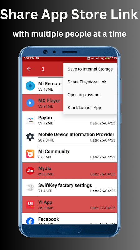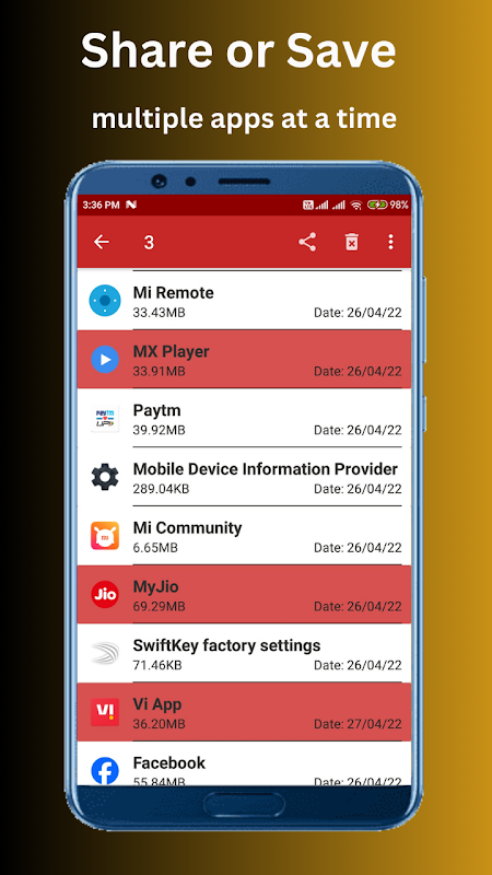 Bu Uygulama, telefonunuzda bulunan tüm Uygulamaları çıkarır, böylece bunları başkalarıyla paylaşabilirsiniz. Ayrıca Uygulamaları (Apks) telefon belleğinize kaydedebilirsiniz.