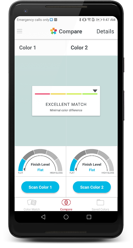 En yakın Sherwin-Williams boya rengiyle eşleşmesi için düz bir yüzeyin rengini taramanız yeterlidir. ColorSnap™ Match Pro cihazı, en yakın boya rengine ek olarak bir boyanın parlaklığını da tanımlar.