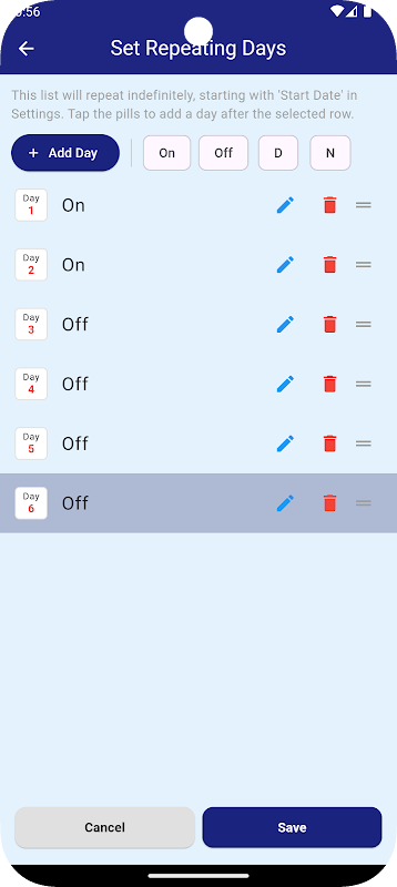 Rotasyon Günlerini Ayarla'ya dokunarak, programı kendi programınızla tam olarak eşleşecek şekilde döndüreceğiniz günleri özelleştirin (ekleyin, kaldırın, günleri taşıyın).
