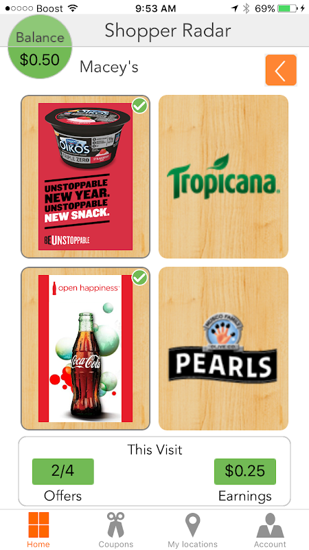 Shopper Radar is an easy way to earn store credits while learning about products and accessing valuable promotions in the grocery store. Shopper Radar doesn’t make you print coupons, take a picture of your receipt, scan barcodes or remember promo codes – everything happens automatically when you check out. It’s fast and easy to create an account or to link your loyalty account right in the app. You can use your store credits, coupons and earnings acquired during each trip immediately. So Go Shop, Get Paid – today!