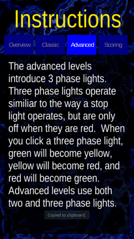 Oyunun amacı? Tüm düğmeleri kapatmak, ancak bir düğmeyi seçtiğinizde etrafındaki dört düğme de değişir. Sizin için yeterince zorluk yok mu? Sokak lambası görevi gören 3 fazlı düğmeleri tanıtan gelişmiş modu deneyin.
