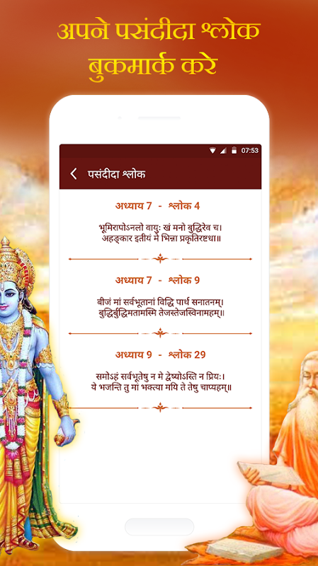 ▲ In this Bhagawad Gita app, we are giving a translation of ‘700 Sanskrit Shlok’ from Shrimad Bhagwat Geeta in the language which is easy to understand by any age group!