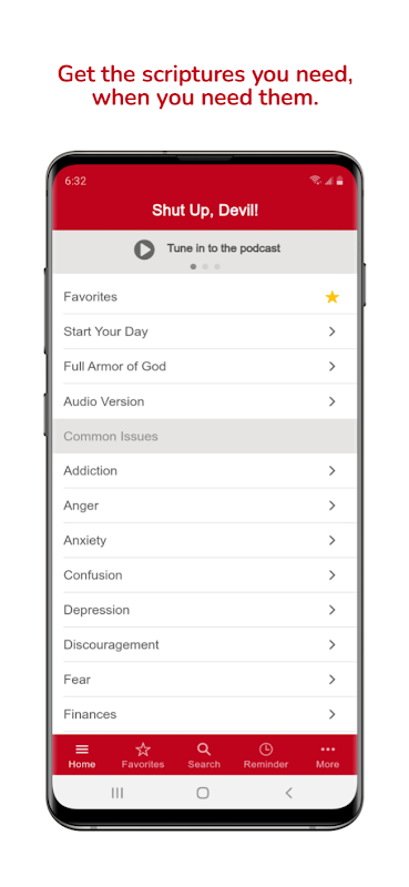 Kapa çeneni, Şeytan! uygulaması, Tanrı'nın Sözünün gücünü cebinize koyar. Her biri yüksek sesle konuşmak üzere tasarlanmış kişiselleştirilmiş bir versiyon da dahil olmak üzere, karşılaştığınız hemen hemen her sorunla ilgili ayetlere erişin.