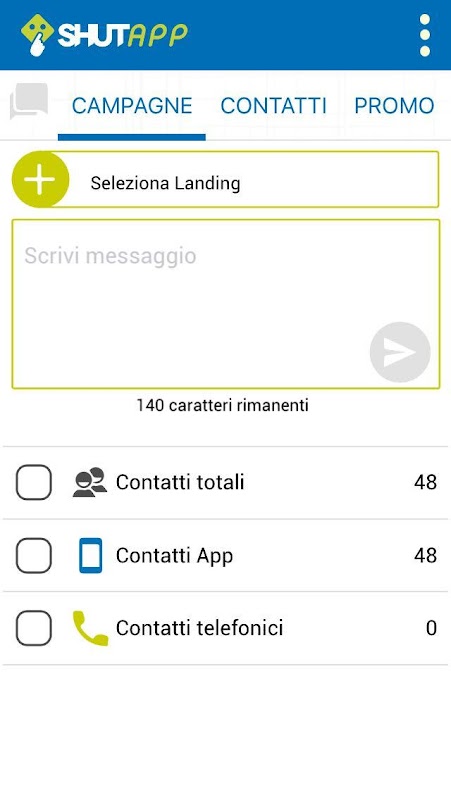 • Inviare le tue campagne a tutti i tuoi contatti, sia via SMS sia tramite app, effettuando la selezione dei contatti anche attraverso la geolocalizzazione
