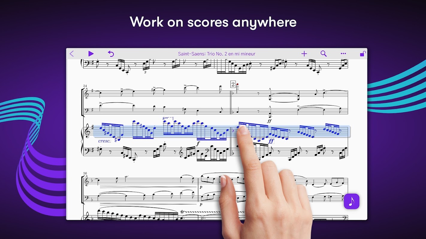 Sayısız besteci ve prodüksiyon şirketinin her gün kullandığı araç ve özelliklerle telefonunuzda ve tabletinizde çalışın. İster fikirlerinizi yazın, ister eksiksiz besteler oluşturun, ister notaları inceleyin, rahat ettiğiniz her yerde yaratma özgürlüğüne sahipsiniz.