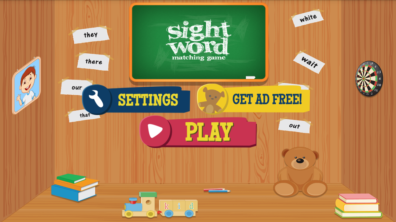 This kids matching game includes 3 difficulty levels to accommodate a wide range of ages. The game will adjust to fit your phone or tablet. Download the Sight Word Matching game for free.