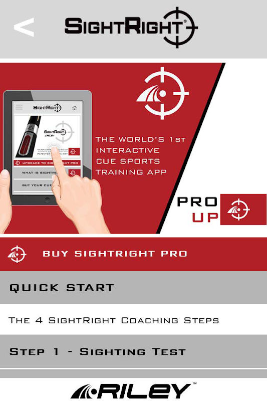 In this app, SightRight® inventor Stephen Feeney will take you through his 4 SightRight® Steps, SightRight® practice routines and many other features and benefits that RILEY cues with SightRight® Technology can deliver to help you become a much more accurate cue sports player.