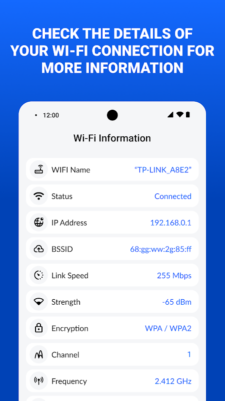 • Gerçek zamanlı okumalar sunan hız ölçer tarzı bir göstergeyle Wi-Fi sinyal gücünüzü görselleştirin.