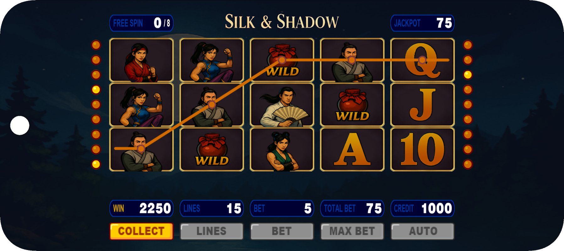 Silk & Shadow, klasik bir slot makinesine dayanan bir kumarhane oyunudur