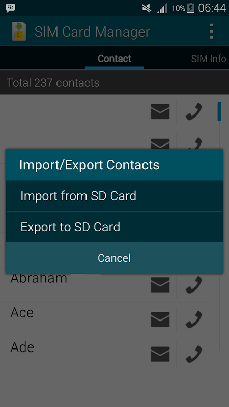 SIM card manager is a simple tool that reads your SIM card and give you many helpful information. It also help you to manage contacts in you SIM Card, you can view all your contacts stored on SIM Card, create a new contacts (store to SIM card), modify a contact or delete contact(s),message or call contact(s).