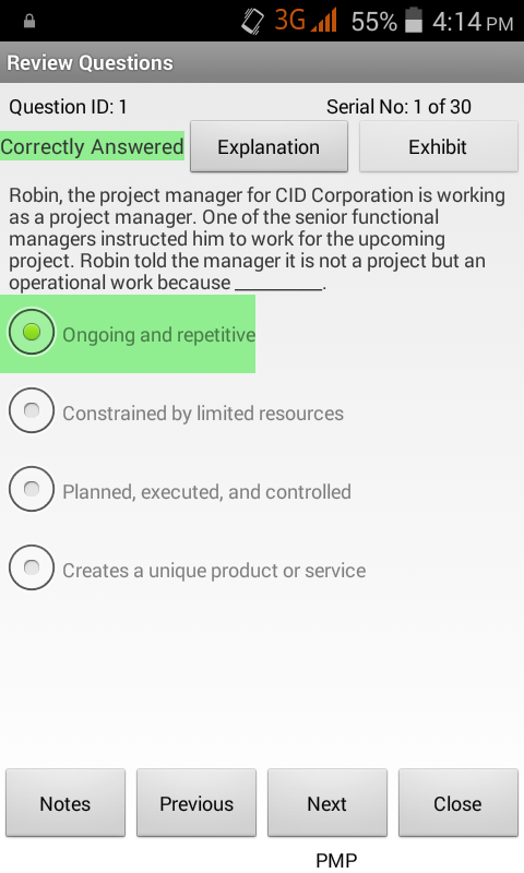 PMP sınav simülatörü ayrıntılı açıklamalar ile 60 uygulamaları soruları sağlar.