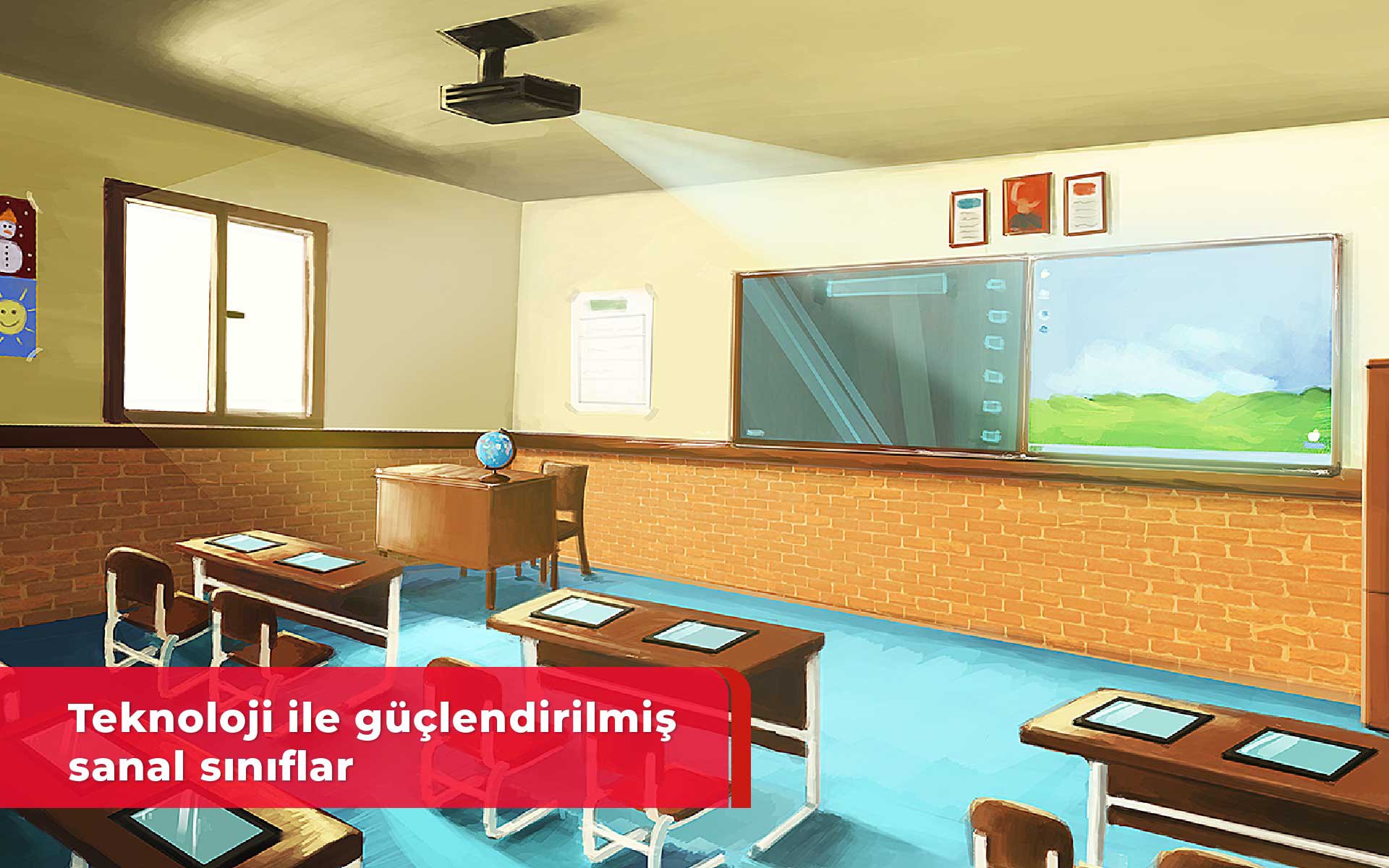 Bir ilköğretim okulu sınıfının üç boyutlu modellenmiş sanal ortamındaki tüm bileşenlerini içermektedir.