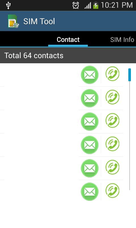 SIM Toolkit Uygulama android telefon için SIM kart bilgilerini görüntülemek için çok kolay ve hızlıdır (SAMSUNG, sony, oppo, lg, .....). SIM Toolkit Uygulama içe veya İhracat ve Sil veya yeni telefon numarası ekleme yapabilirsiniz. mesajı Gönderilen veya bu uygulamadan bir çağrı yapmak. SIM Toolkit Yöneticisi kolayca ve basit bir SIM kart yönetmelerine yardımcı bir uygulama. kişileri yönetmek tarafından SIM karttaki bilgilerin yönetimini kolaylaştırmak. Ve yararlıdır bilgiler sağlar. Ayrıca kolayca SIM kartı yönetme olanağı sağlar.