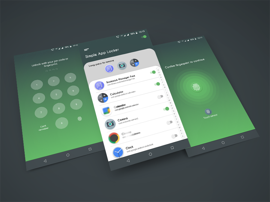 Basit uygulama dolabı, uygulamalarınızı 4 haneli pin kodları veya parmak izi kilidi ile korur.