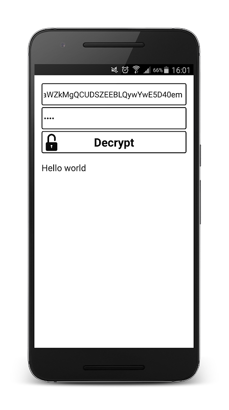 Simple application for password based encryption and decryption of text. Easily encrypt your message with a password. Decryption of the encrypted data is possible only if you know the right password.