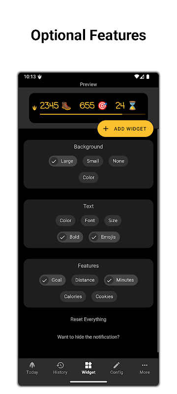 ● Uygulama, yürüdüğünüz mesafeyi ve yaktığınız kaloriyi yaklaşık olarak hesaplayabilir. ● İsterseniz çerezleri de sayabilir. 🍪