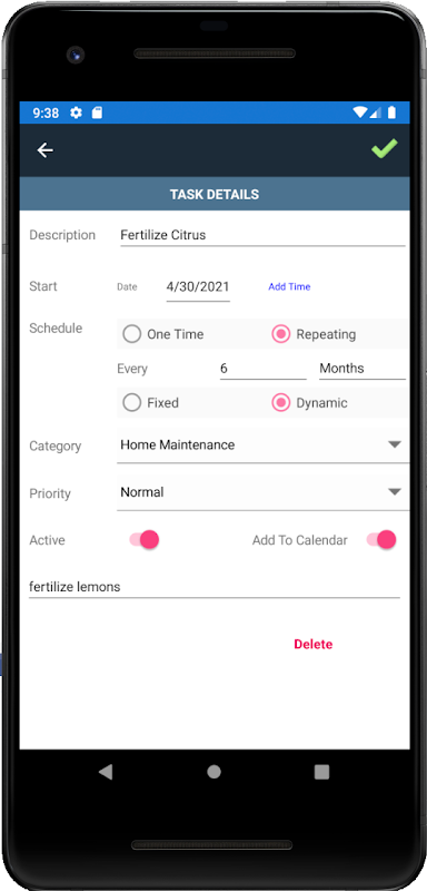 -Schedule repeating tasks and mark them as complete or dismiss