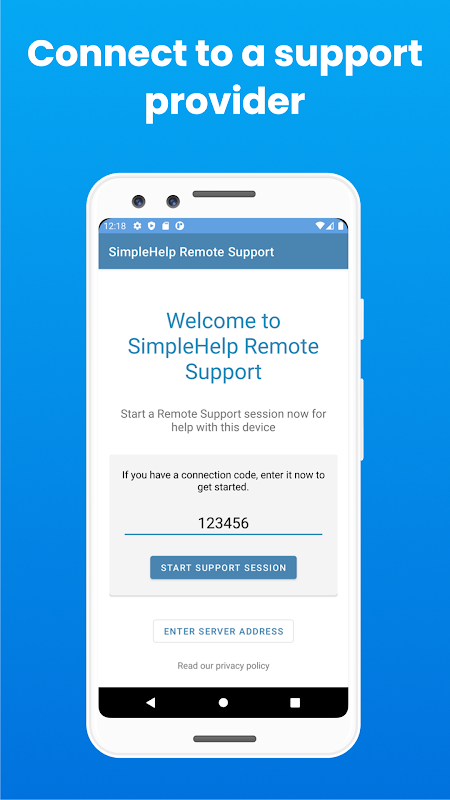 SimpleHelp Uzaktan Destek ile mobil cihazınızla ilgili yardım ve yardım almak için herhangi bir SimpleHelp destek sağlayıcısına kolayca bağlanabilirsiniz.