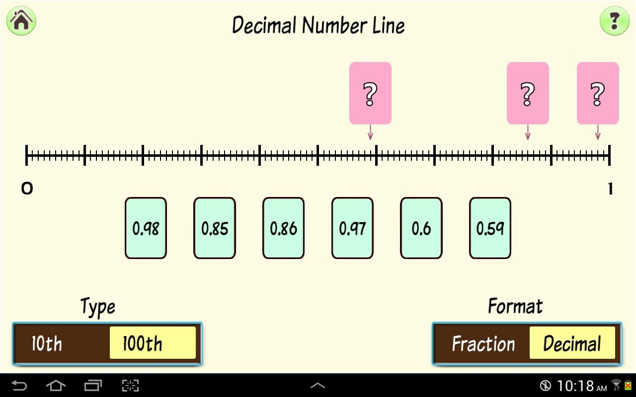 5. 10th and 100th. In this game, you are asked to shade 10th or 100th based fractions, you can also set the format to decimals, English word notation, or convert 10th to 100th or vice versa. This activity with all options is available in the lite version also.