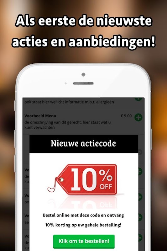 Bizim uygulamayı indirin ve en son haberler ve promosyonlar, teklifler ve indirimler ile güncel kalın. Bizim app üzerinden menümüzü görüntüleyebilir ve doğrudan telefonunuzdan sipariş verebilirsiniz. Ayrıca uygulaması aracılığıyla iDEAL ile ödeme yapabilirsiniz!