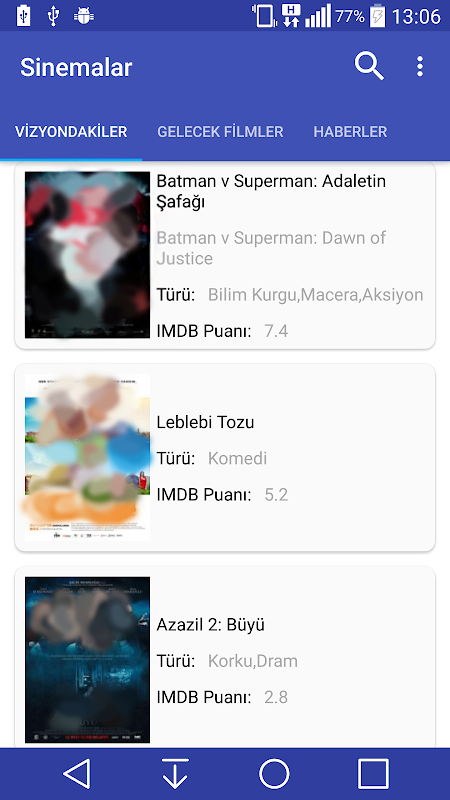 - Tüm filmlerin Afiş, IMDB Puan, Tür, Yönetmen, Oyuncular, Özet bilgilerini öğrenebilir, filmlere yapılan yorumları okuyabilirsiniz.