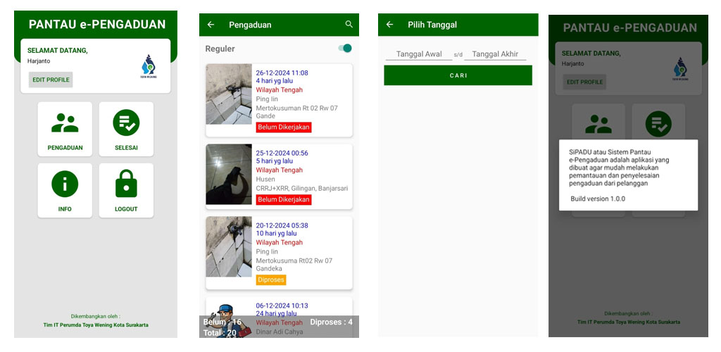 Sipadu veya e-şikayet izleme sistemi, Perumda Air Minum Toya Wening, Surakarta Şehri tarafından müşterilerden gelen şikayetlerin izlenmesini ve çözümlenmesini kolaylaştırmak amacıyla oluşturulan bir uygulamadır.