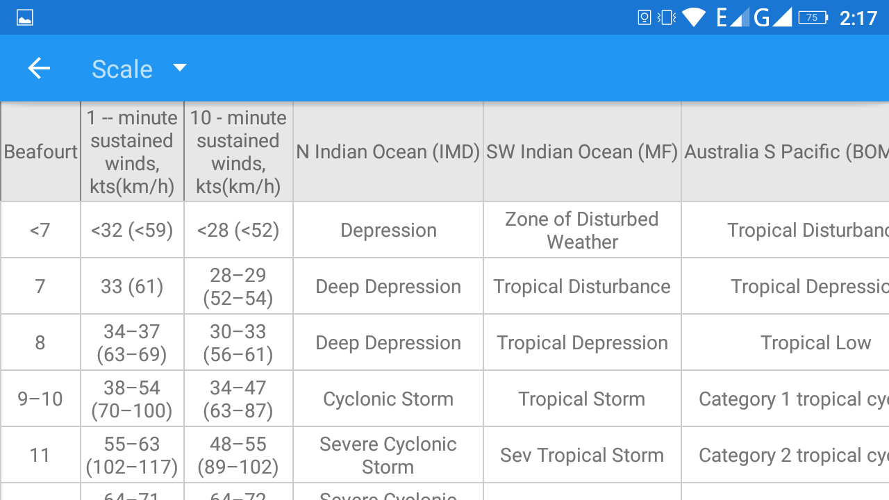 - 12 noktalı OMM / WMO Standardında Beaufort Ölçeği (Organizasyon Meteorologique Mondiale / Dünya Meteoroloji Örgütü).