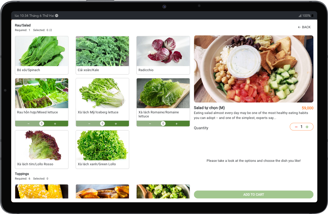 _Müşterilerin iPad'de kendi başlarına sipariş verebilmeleri için görselleştirilmiş ve ilgi çekici resimler ve yemekler hakkında tam bilgi içeren E-menü: beslenme bilgileri, fiyat, derecelendirme vb.