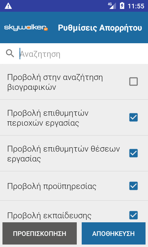 Το skywalker.gr, το μεγαλύτερο job site στην Ελλάδα, δημιούργησε την παρούσα εφαρμογή για τη βέλτιστη κάλυψη των αναγκών σας στην αναζήτηση εργασίας. Κατεβάστε τη δωρεάν και επωφεληθείτε των πλεονεκτημάτων που αυτή σας προσφέρει από όπου κι αν βρίσκεστε.