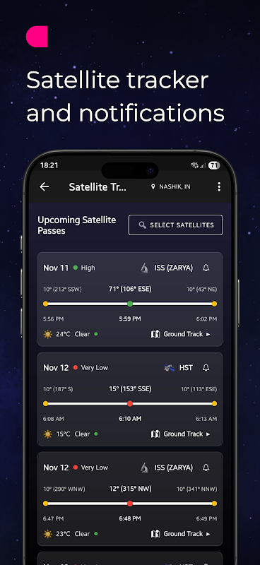 - Gökyüzünü istediğiniz anda görmek için zamanda ileri veya geri gidin. - Gezegenleri, takımyıldızları, parlak yıldızları ve Messier cisimlerini hareket halinde görselleştirin.