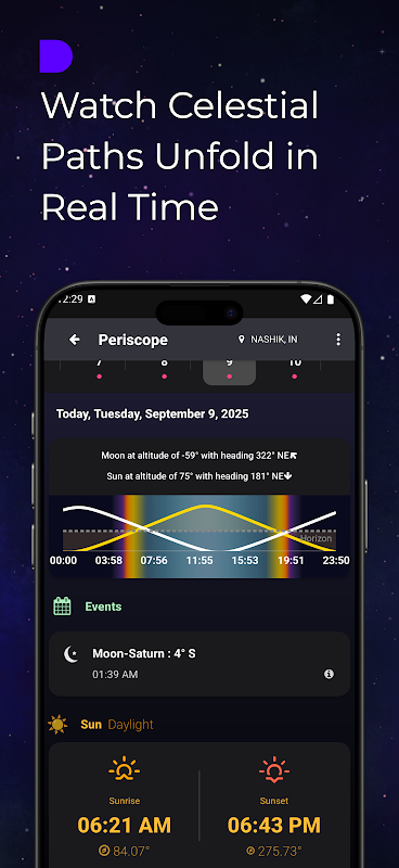 - Gün boyunca doğuşlarını ve batışlarını görselleştirin.