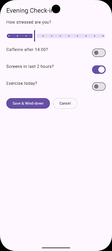 •📊 Günlük Bilgiler: Daha iyi uykuya giden yolculuğunuzu görselleştirmek için sabah ve akşam kontrolleriyle ilerlemenizi takip edin.
