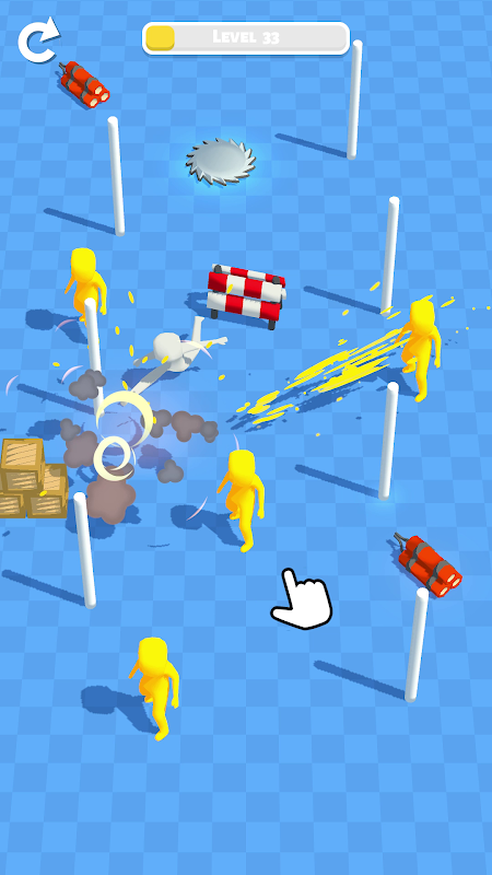 Karakterleri çekmek ve hepsini dilimlemek için direkleri ve ipleri kullanın.