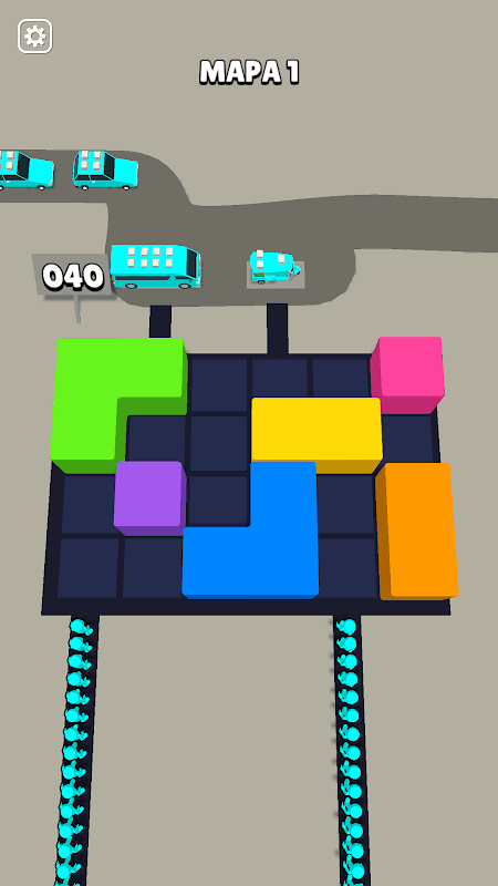 Blokları kaydırın ve insanların arabalara ulaşması için bir yol oluşturun. Araba renklerine ve sıra sırasına dikkat edin. Birçok insan yolculuklarını bekliyor. Stratejik olun ve herkes eve sağ salim varsın.