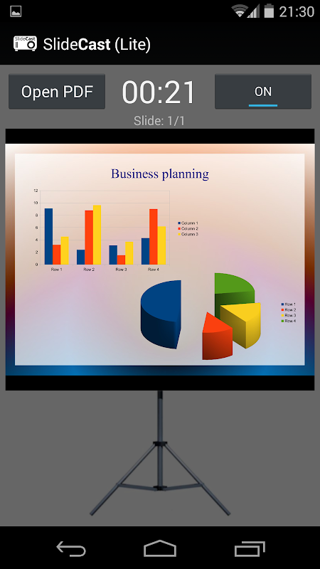 With SlideCast and Google Chromecast you can show your slides in a projector and TV from any Android device. Forget your PC and cables, just upload your PDF to your mobile and control your slides. This app provides an interface to cast slides and PDF files directly to your Chromecast device.