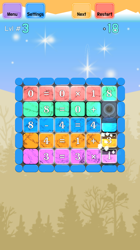 Kullanıcıların oynayabileceği, tek satırlık bir denklemden başlayıp 5 satırlık denkleme kadar giden 5 oyun modu vardır. Her denklem, örneğin 0+1=1 gibi basit bir matematiksel denklemden oluşur. 0 ile 99 aralığındaki sayılarla çarpma, toplama ve çıkarma kullanırız. Denklemin her sayısı ve operatörü farklı bir fayans üzerinde görünür. Tahta başlangıçta karıştırılır, kullanıcının her satır geçerli bir denklem olana kadar fayansları kaydırması gerekir.