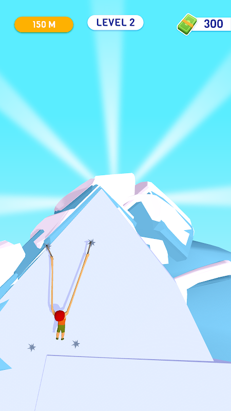 Draw him back and stretch his arms while he tries not to fall off the mountain!