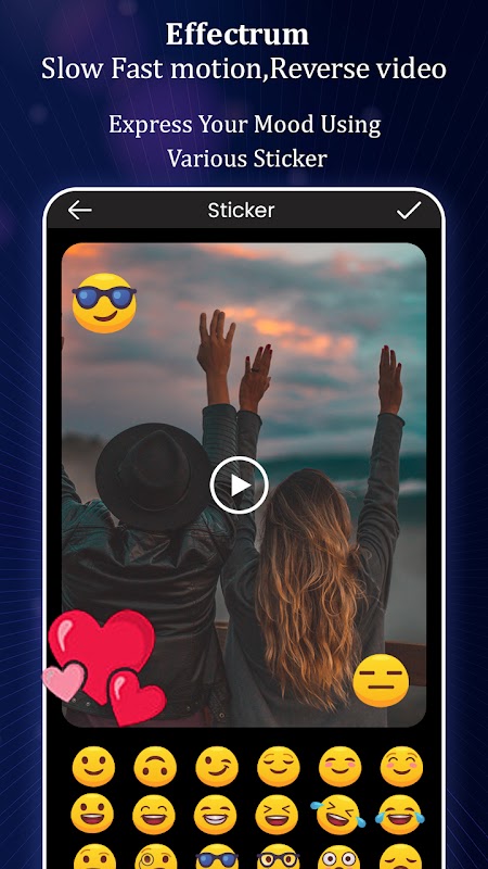 Tüm Video Düzenleyici Etkisi, Yavaş Hızlı Hareket, Ters video Düzenleyici Uygulaması, galerinizdeki videoları düzenlemenize ve bunları Android cep telefonlarının deposunda yayınlamanıza olanak tanır. Facebook, Instagram, YouTube, Twitter, Telegram, Vimeo ve daha fazlası gibi sosyal medya platformlarında paylaşmak için bu güçlü ancak kullanımı kolay hikaye oluşturucuyu edinin.