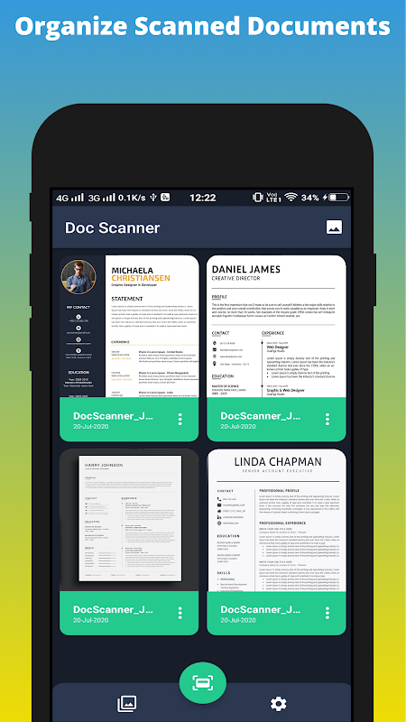 Open Smart Doc Scanner , the best document scanner app in the store, hold it straight against the document you would like to scan. The scanner app will automatically detect the document's edges. You can then crop, edit, rotate and apply filters and export the document as either JPG or PDF with a single tap.