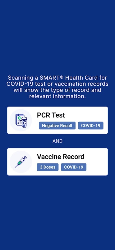 SMART Health Card Verifier uygulaması, bir kişinin COVID-19 testini veya aşı kimliğini hızlı bir şekilde doğrulamak için bir SMART Health Card QR kodunu taramanıza olanak tanır. SMART Health Card QR kodunun taranması:
