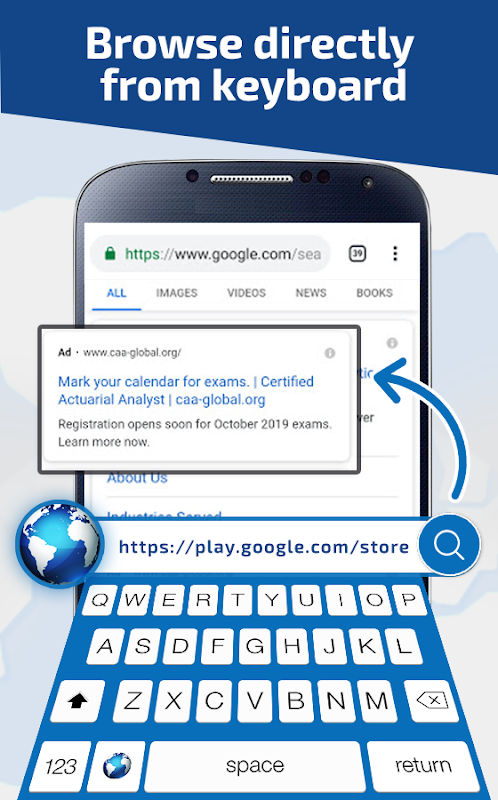 Eşsiz klavye ve tarayıcı uygulaması temel olarak tek bir uygulamada ikidir çünkü bu bir klavyenin yanı sıra bir klavyedir. Tüm tarayıcı özellikleri bu Tarayıcı klavye uygulamasında bulunur, böylece aynı anda yazıp göz atabilirsiniz