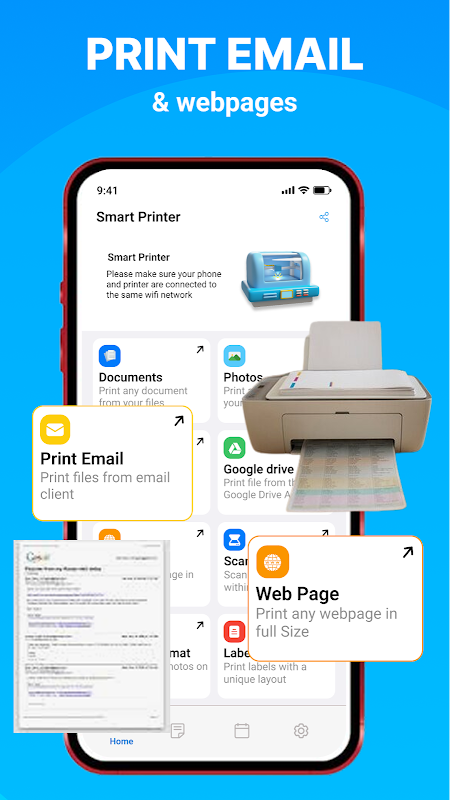 Smart Printer, yazdırmayı kolay ve rahat hale getiren, Android için mükemmel mobil yazıcı uygulamasıdır. Belgeleri, fotoğrafları, e-postaları, notları veya takvim sayfalarını yazdırmanız gerekiyorsa, bu uygulama tüm yazdırma ihtiyaçlarınızı karşılar. Akıllı bir yazıcıyla doğrudan telefonunuzdan kolayca çıktı alabilirsiniz. Wi-Fi ile mobil yazdırmayı destekleyerek istediğiniz zaman, istediğiniz yerden yazdırmanıza olanak tanır.