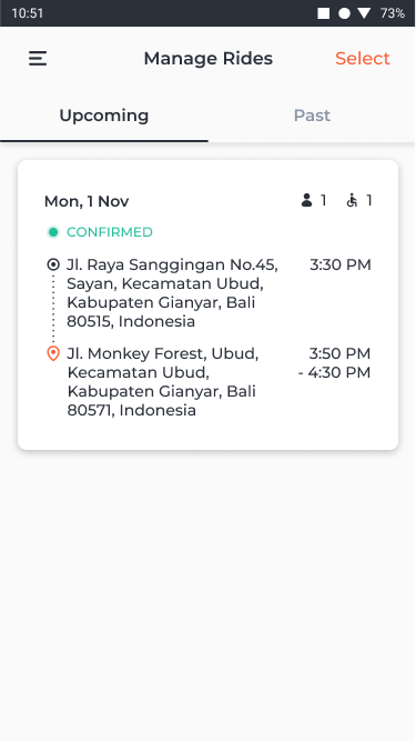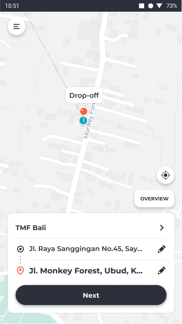 Ubud, Bali'de yaşayanlar ve turistler için isteğe bağlı xEV servisi rezervasyon uygulaması.