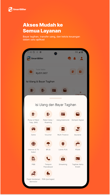 SmartBiller, kullanıcıların rekabetçi fiyatlarla cep telefonu kredisi yüklemelerine ve çeşitli PPOB (Çevrimiçi Ödeme Noktası Bankası) faturalarını ödemelerine yardımcı olan, üçüncü taraf hizmet tabanlı bir dijital ödeme uygulamasıdır. Bu uygulama, günlük işlemleri basitleştirmek, zamandan tasarruf sağlamak ve daha rahat bir ödeme deneyimi sunmak için oluşturulmuştur. SmartBiller, iki ana hizmet sunar: cep telefonu kredisi yükleme ve fatura ödeme. Bu hizmetlere, güvenilir ödeme ortakları aracılığıyla her zaman ve her yerde hızlı ve kolay bir şekilde erişilebilir.